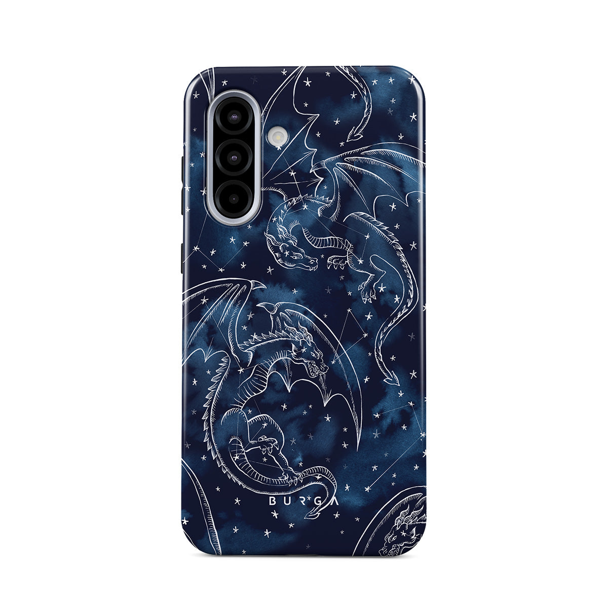 Este design contém: dragões, estrelas, constelações, céu azul escuro