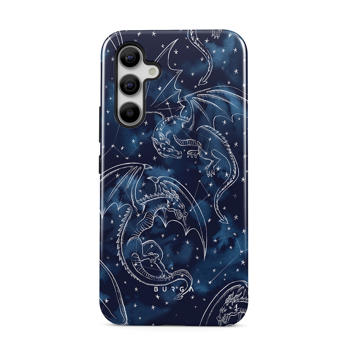Este design contém: dragões, estrelas, constelações, céu azul escuro