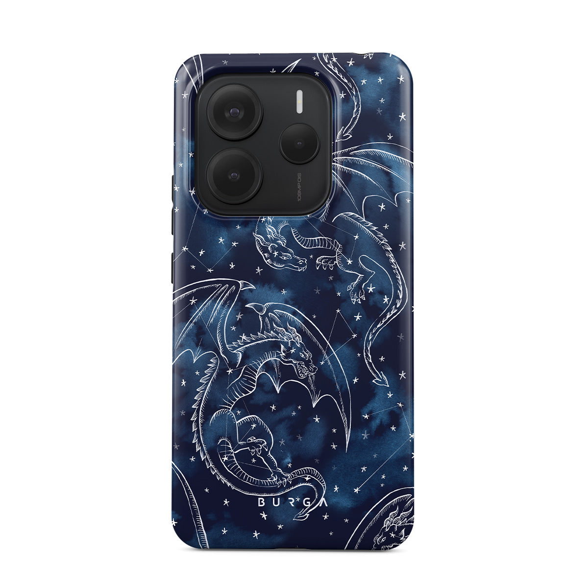 Este design contém: dragões, estrelas, constelações, céu azul escuro